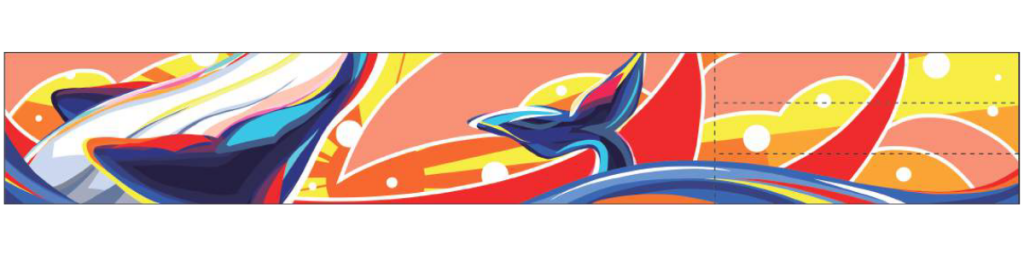 宮崎の太陽と海をイメージし、鮮やかな色彩と流れるような曲線が特徴です。